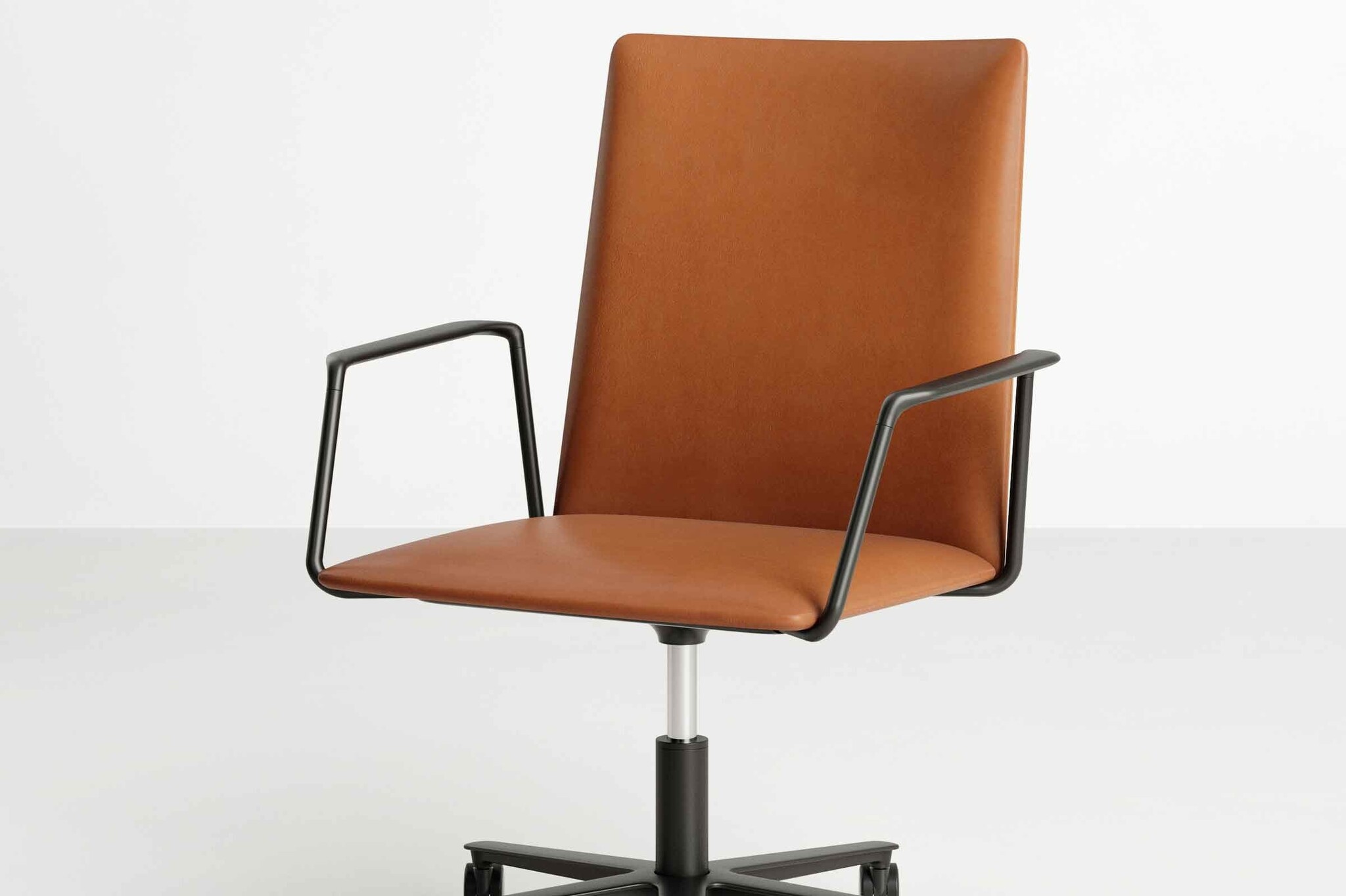 Stoel met spinvoet op wielen en gesloten armleuningen (R0126 en R0127)