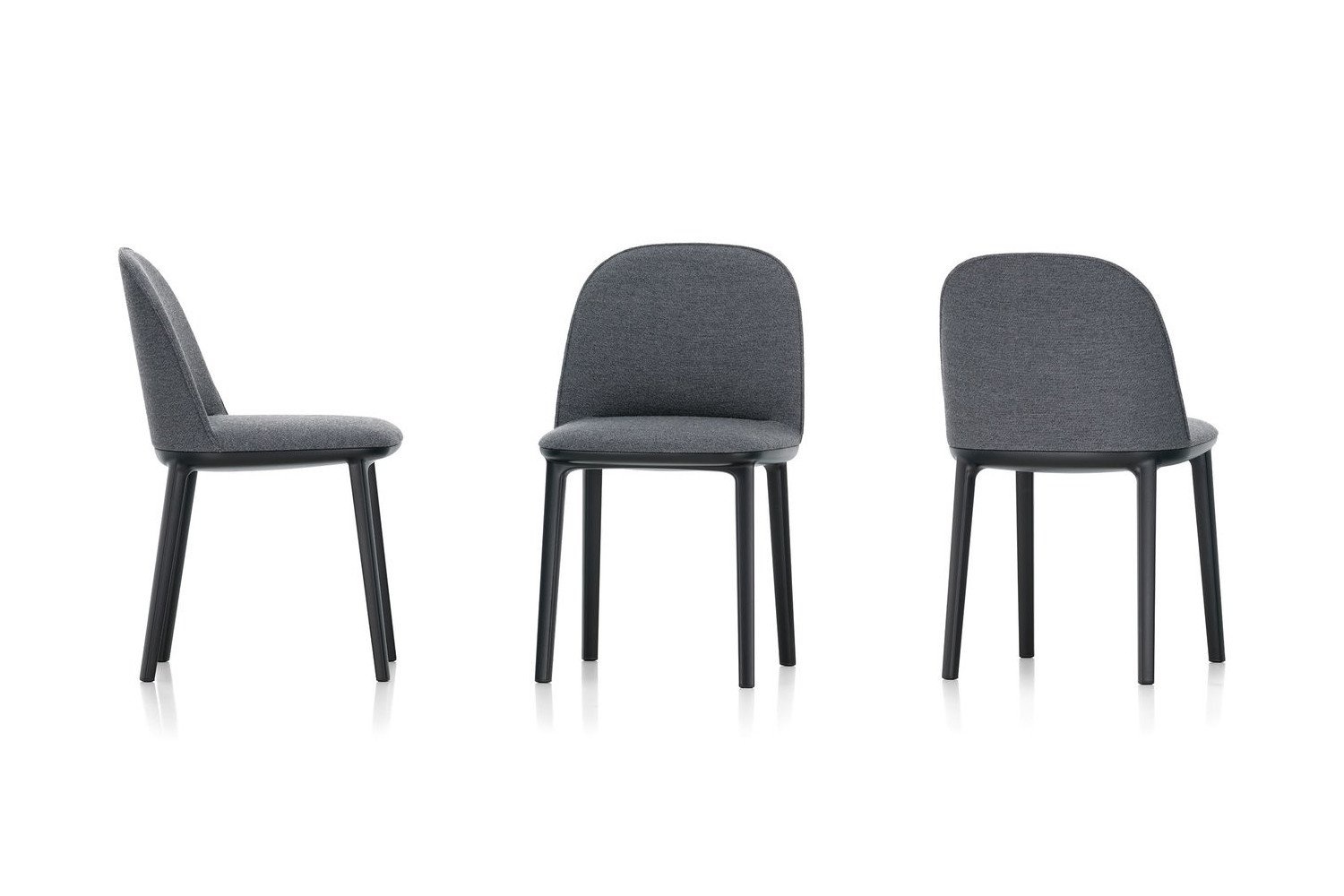 De Vitra Softshell Side Chair heeft een onderstel in basic dark met vier poten. De zachte contouren worden benadrukt door de zachte bekleding.